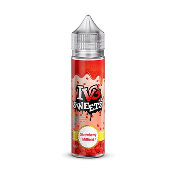 IVG Sweets Strawberry Millions - On inhale a vibrant and ripe tasting strawberry flavour is detectable, then on exhale a candy flavour blends with the fruit, creating an eliquid that has a sweet shop feel to it.